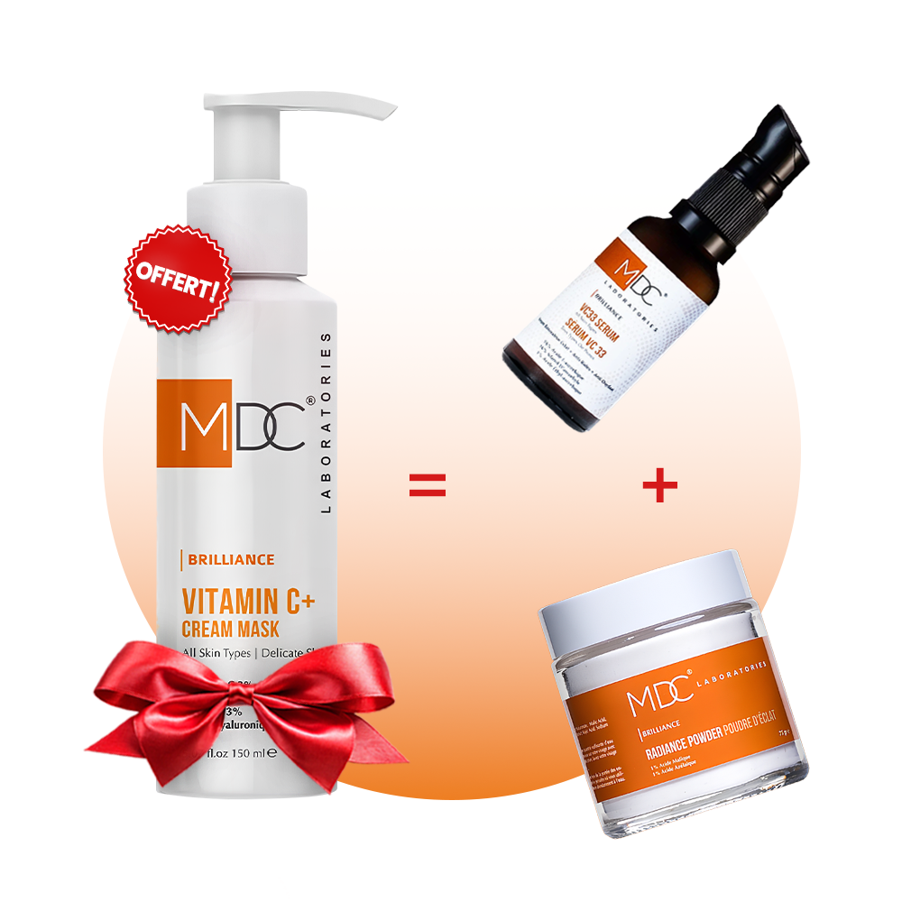 Traiter & illuminerAppliquez le Sérum MDC Brilliance VC 33 pour booster la luminosité, unifier le teint et protéger la peau grâce à la Vitamine C.